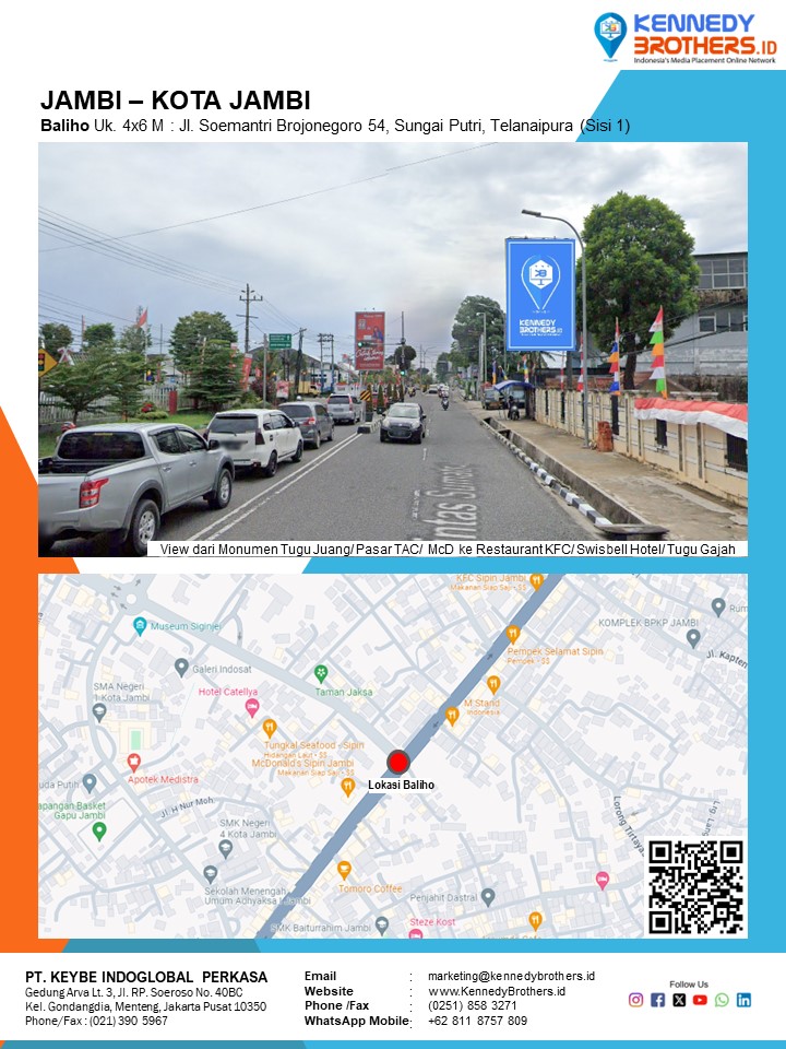 KennedyBrothers.ID adalah Platform Pencarian, Penyewaan dan Produksi Iklan Indoor-Outdoor Online Terbesar dan Terlengkap di Indonesia. Kini Pesan dan Sewa Billboard, Led/Videotron, Bando Jalan, Neonbox, Streetsign, Branding Mall, Branding Mobil, Branding Motor bisa dilakukan di KennedyBrothers,Id. Untuk mempercepat proses pemesanan dan transaksi lokasi media ini dapat menghubungi admin pada icon CS WhatsApp (Fast Respon) Pojok Kanan Bawah