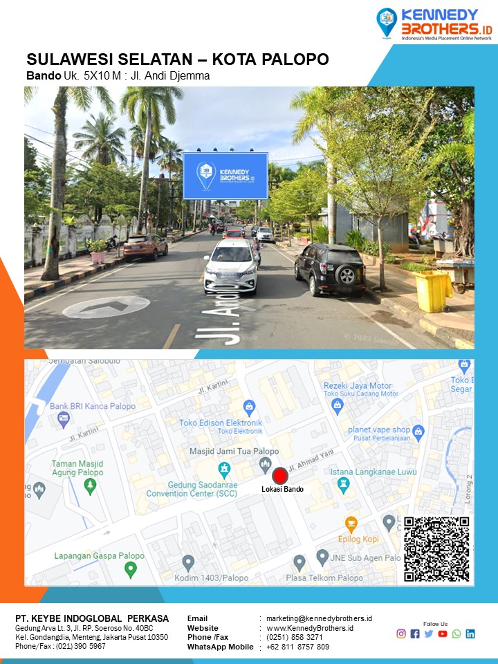 KennedyBrothers.ID adalah Platform Pencarian, Penyewaan dan Produksi Iklan Indoor-Outdoor Online Terbesar dan Terlengkap di Indonesia. Kini Pesan dan Sewa Billboard, Led/Videotron, Bando Jalan, Neonbox, Streetsign, Branding Mall, Branding Mobil, Branding Motor bisa dilakukan di KennedyBrothers,Id. Untuk mempercepat proses pemesanan dan transaksi lokasi media ini dapat menghubungi admin pada icon CS WhatsApp (Fast Respon) Pojok Kanan Bawah