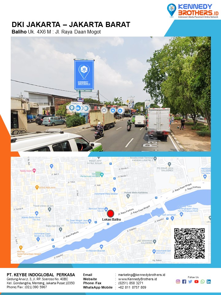KennedyBrothers.ID adalah Platform Pencarian, Penyewaan dan Produksi Iklan Indoor-Outdoor Online Terbesar dan Terlengkap di Indonesia. Kini Pesan dan Sewa Billboard, Led/Videotron, Bando Jalan, Neonbox, Streetsign, Branding Mall, Branding Mobil, Branding Motor bisa dilakukan di KennedyBrothers,Id. Untuk mempercepat proses pemesanan dan transaksi lokasi media ini dapat menghubungi admin pada icon CS WhatsApp (Fast Respon) Pojok Kanan Bawah