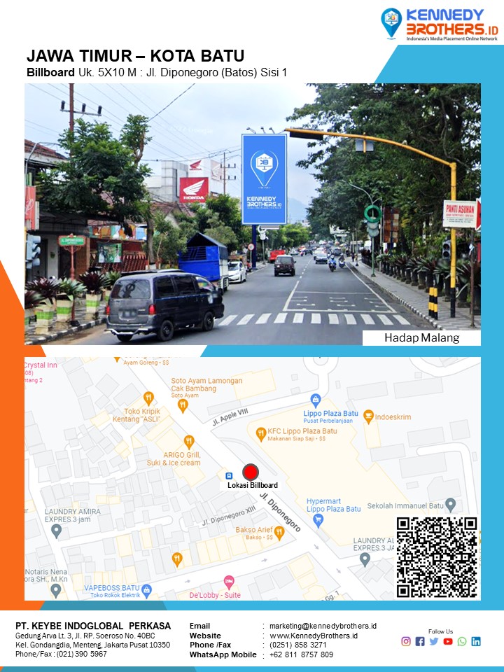 KennedyBrothers.ID adalah Platform Pencarian, Penyewaan dan Produksi Iklan Indoor-Outdoor Online Terbesar dan Terlengkap di Indonesia. Kini Pesan dan Sewa Billboard, Led/Videotron, Bando Jalan, Neonbox, Streetsign, Branding Mall, Branding Mobil, Branding Motor bisa dilakukan di KennedyBrothers,Id. Untuk mempercepat proses pemesanan dan transaksi lokasi media ini dapat menghubungi admin pada icon CS WhatsApp (Fast Respon) Pojok Kanan Bawah