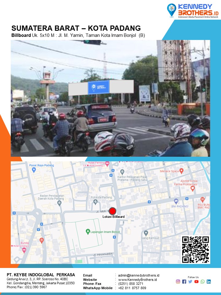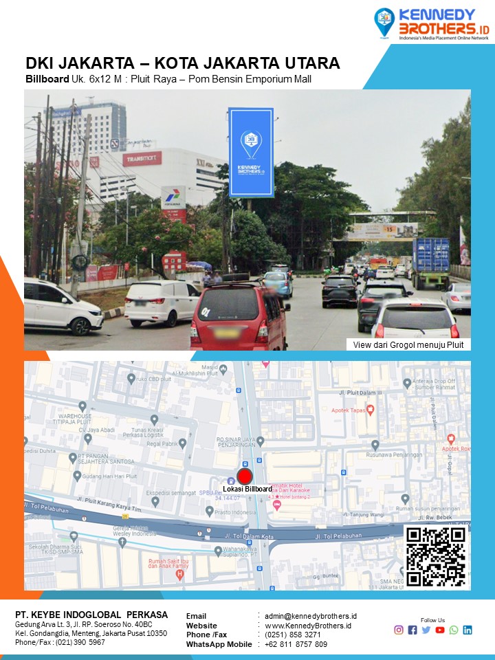 KennedyBrothers.ID adalah Platform Pencarian, Penyewaan dan Produksi Iklan Indoor-Outdoor Online Terbesar dan Terlengkap di Indonesia. Kini Pesan dan Sewa Billboard, Led/Videotron, Bando Jalan, Neonbox, Streetsign, Branding Mall, Branding Mobil, Branding Motor bisa dilakukan di KennedyBrothers,Id. Untuk mempercepat proses pemesanan dan transaksi lokasi media ini dapat menghubungi admin pada icon CS WhatsApp (Fast Respon) Pojok Kanan Bawah