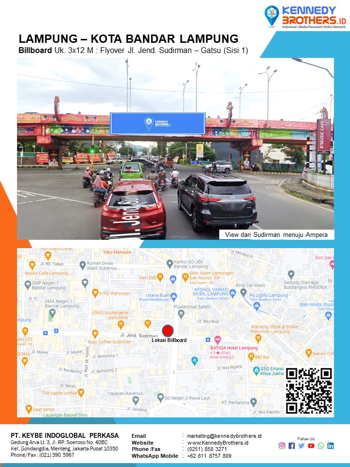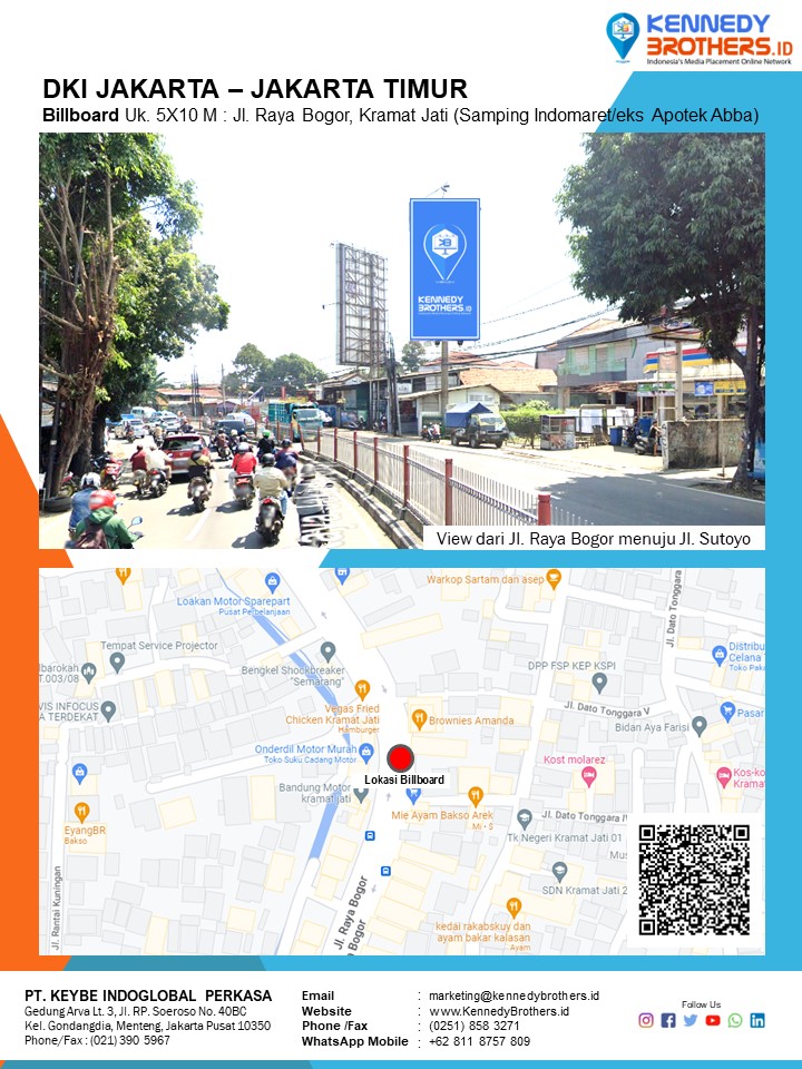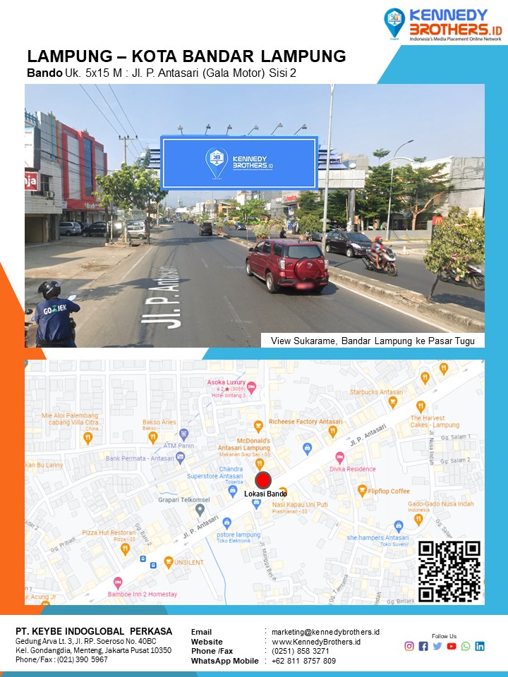 KennedyBrothers.ID adalah Platform Pencarian, Penyewaan dan Produksi Iklan Indoor-Outdoor Online Terbesar dan Terlengkap di Indonesia. Kini Pesan dan Sewa Billboard, Led/Videotron, Bando Jalan, Neonbox, Streetsign, Branding Mall, Branding Mobil, Branding Motor bisa dilakukan di KennedyBrothers,Id. Untuk mempercepat proses pemesanan dan transaksi lokasi media ini dapat menghubungi admin pada icon CS WhatsApp (Fast Respon) Pojok Kanan Bawah