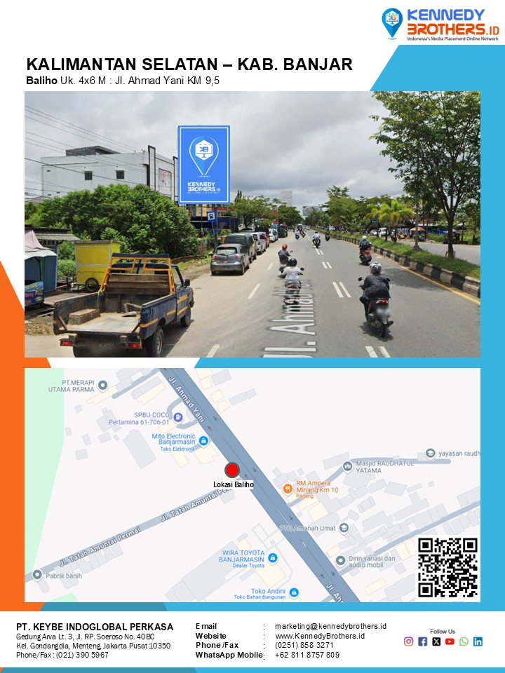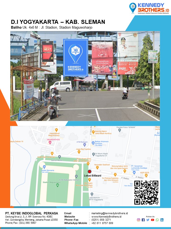 KennedyBrothers.ID adalah Platform Pencarian, Penyewaan dan Produksi Iklan Indoor-Outdoor Online Terbesar dan Terlengkap di Indonesia. Kini Pesan dan Sewa Billboard, Led/Videotron, Bando Jalan, Neonbox, Streetsign, Branding Mall, Branding Mobil, Branding Motor bisa dilakukan di KennedyBrothers,Id. Untuk mempercepat proses pemesanan dan transaksi lokasi media ini dapat menghubungi admin pada icon CS WhatsApp (Fast Respon) Pojok Kanan Bawah
