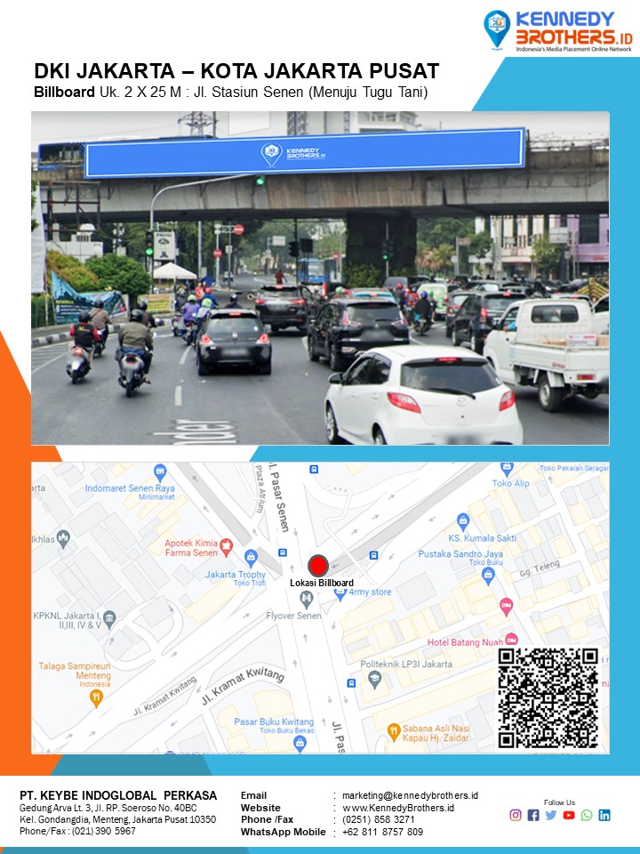 KennedyBrothers.ID adalah Platform Pencarian, Penyewaan dan Produksi Iklan Indoor-Outdoor Online Terbesar dan Terlengkap di Indonesia. Kini Pesan dan Sewa Billboard, Led/Videotron, Bando Jalan, Neonbox, Streetsign, Branding Mall, Branding Mobil, Branding Motor bisa dilakukan di KennedyBrothers,Id. Untuk mempercepat proses pemesanan dan transaksi lokasi media ini dapat menghubungi admin pada icon CS WhatsApp (Fast Respon) Pojok Kanan Bawah