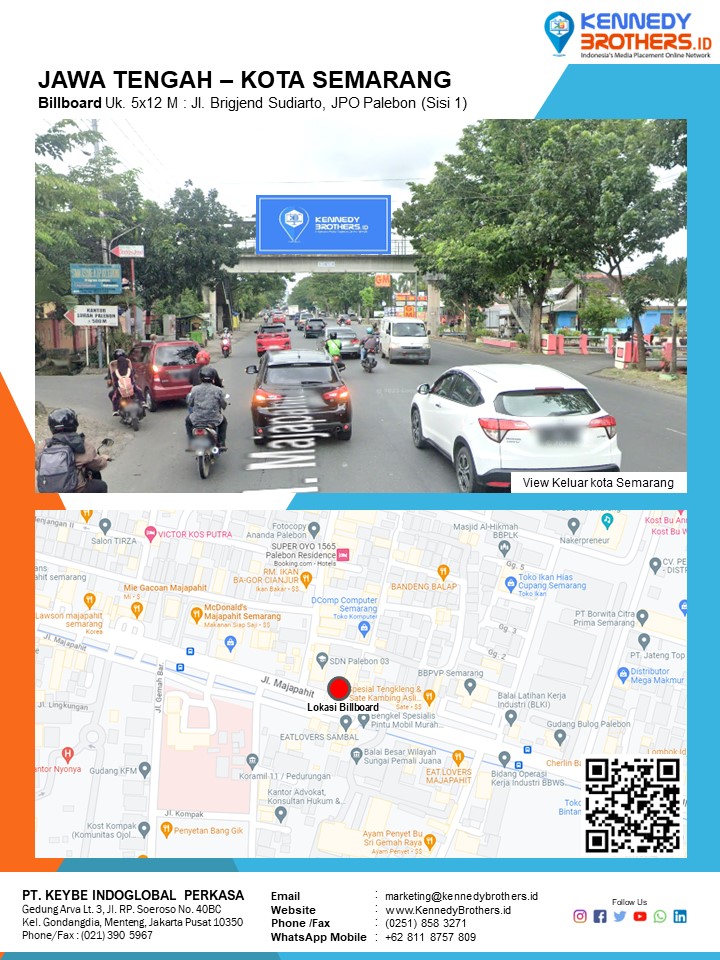 KennedyBrothers.ID adalah Platform Pencarian, Penyewaan dan Produksi Iklan Indoor-Outdoor Online Terbesar dan Terlengkap di Indonesia. Kini Pesan dan Sewa Billboard, Led/Videotron, Bando Jalan, Neonbox, Streetsign, Branding Mall, Branding Mobil, Branding Motor bisa dilakukan di KennedyBrothers,Id. Untuk mempercepat proses pemesanan dan transaksi lokasi media ini dapat menghubungi admin pada icon CS WhatsApp (Fast Respon) Pojok Kanan Bawah