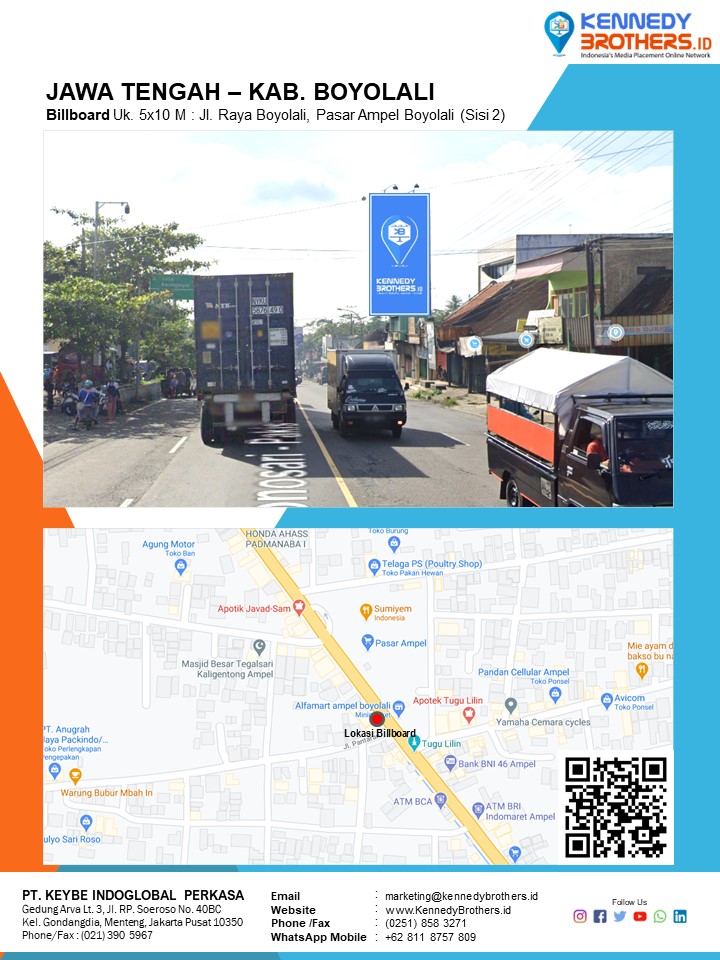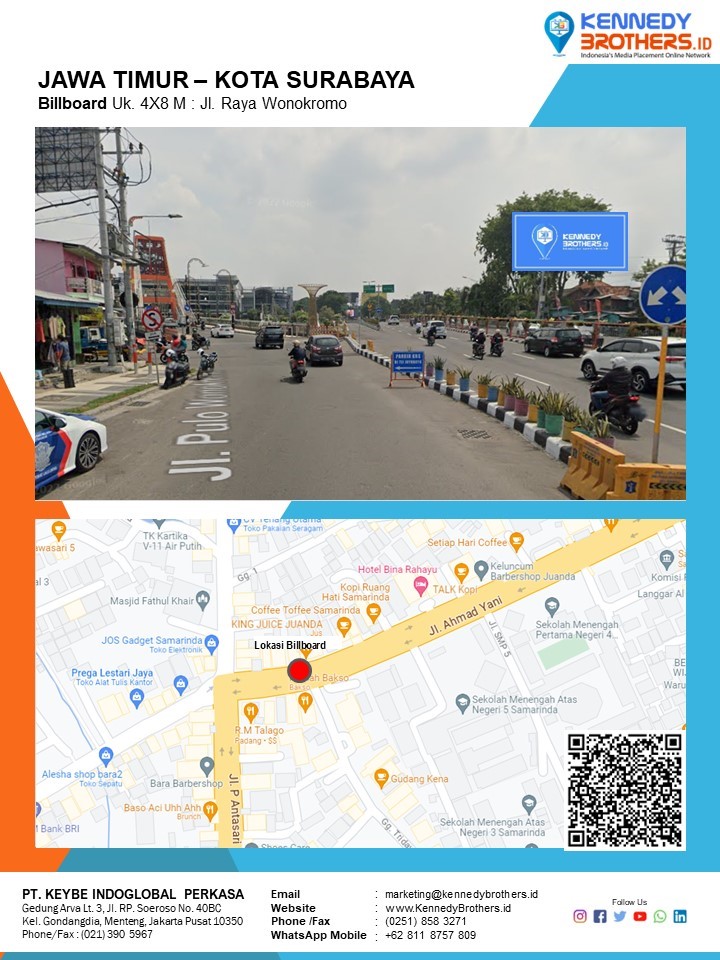 KennedyBrothers.ID adalah Platform Pencarian, Penyewaan dan Produksi Iklan Indoor-Outdoor Online Terbesar dan Terlengkap di Indonesia. Kini Pesan dan Sewa Billboard, Led/Videotron, Bando Jalan, Neonbox, Streetsign, Branding Mall, Branding Mobil, Branding Motor bisa dilakukan di KennedyBrothers,Id. Untuk mempercepat proses pemesanan dan transaksi lokasi media ini dapat menghubungi admin pada icon CS WhatsApp (Fast Respon) Pojok Kanan Bawah