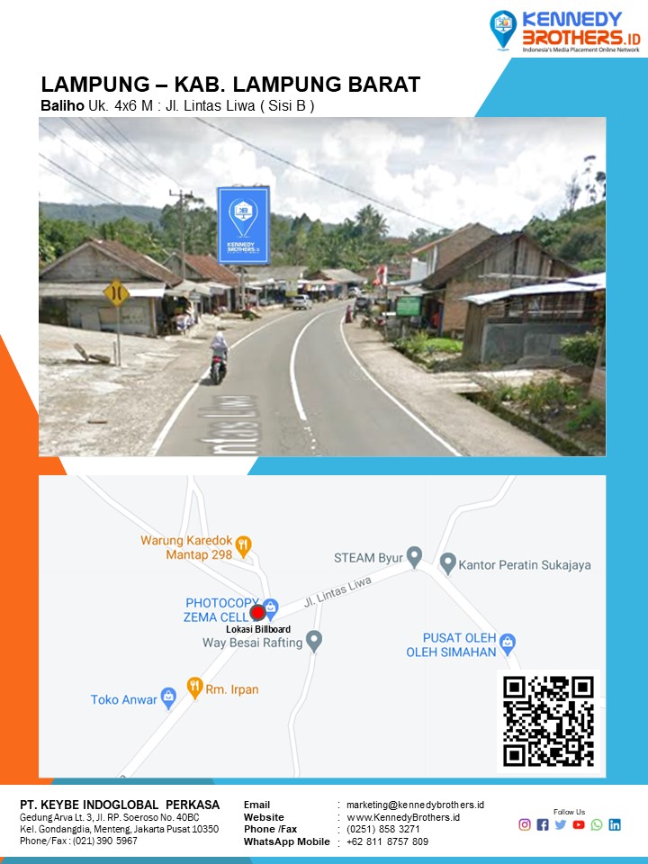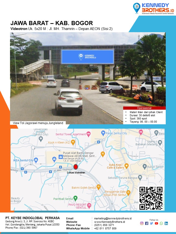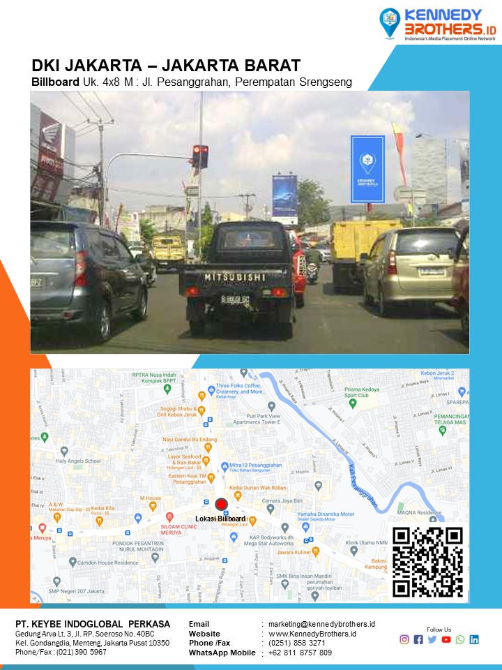 KennedyBrothers.ID adalah Platform Pencarian, Penyewaan dan Produksi Iklan Indoor-Outdoor Online Terbesar dan Terlengkap di Indonesia. Kini Pesan dan Sewa Billboard, Led/Videotron, Bando Jalan, Neonbox, Streetsign, Branding Mall, Branding Mobil, Branding Motor bisa dilakukan di KennedyBrothers,Id. Untuk mempercepat proses pemesanan dan transaksi lokasi media ini dapat menghubungi admin pada icon CS WhatsApp (Fast Respon) Pojok Kanan Bawah