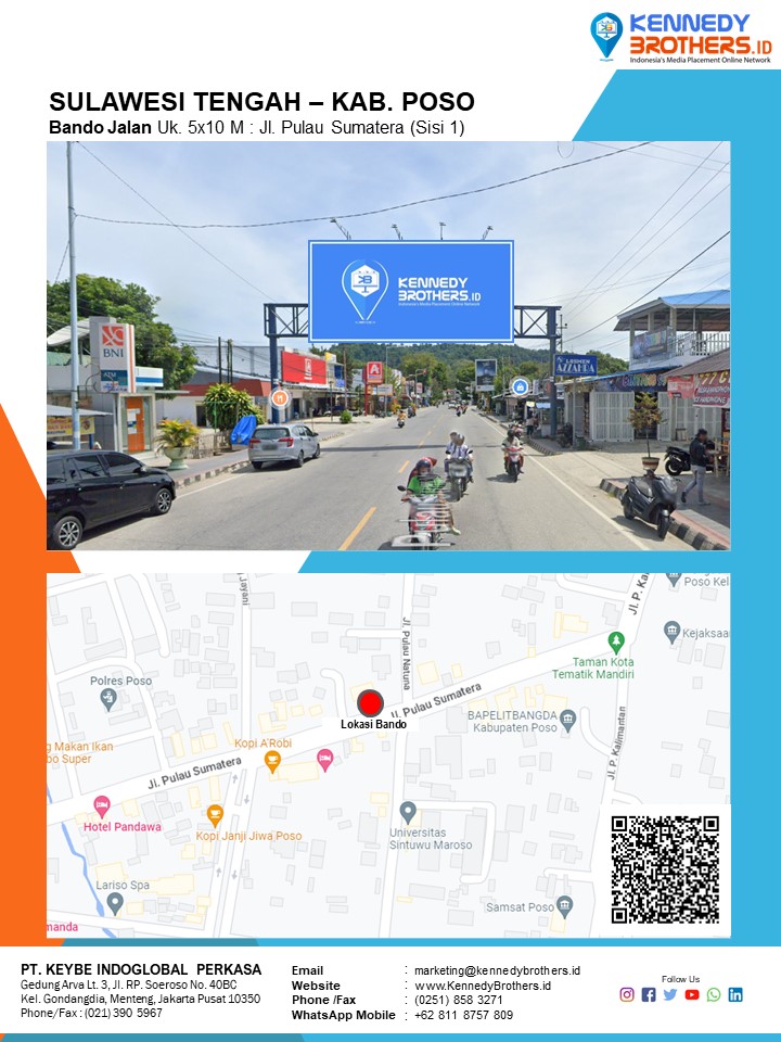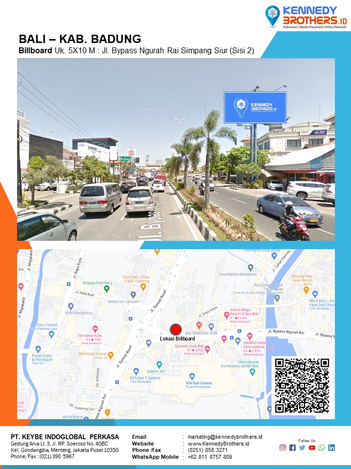 KennedyBrothers.ID adalah Platform Pencarian, Penyewaan dan Produksi Iklan Indoor-Outdoor Online Terbesar dan Terlengkap di Indonesia. Kini Pesan dan Sewa Billboard, Led/Videotron, Bando Jalan, Neonbox, Streetsign, Branding Mall, Branding Mobil, Branding Motor bisa dilakukan di KennedyBrothers,Id. Untuk mempercepat proses pemesanan dan transaksi lokasi media ini dapat menghubungi admin pada icon CS WhatsApp (Fast Respon) Pojok Kanan Bawah