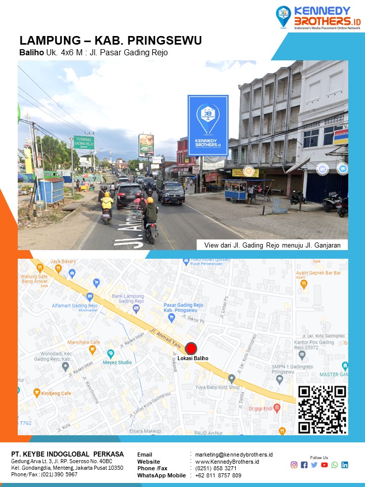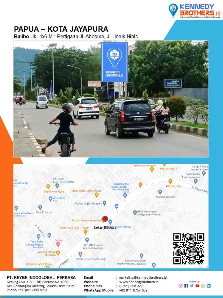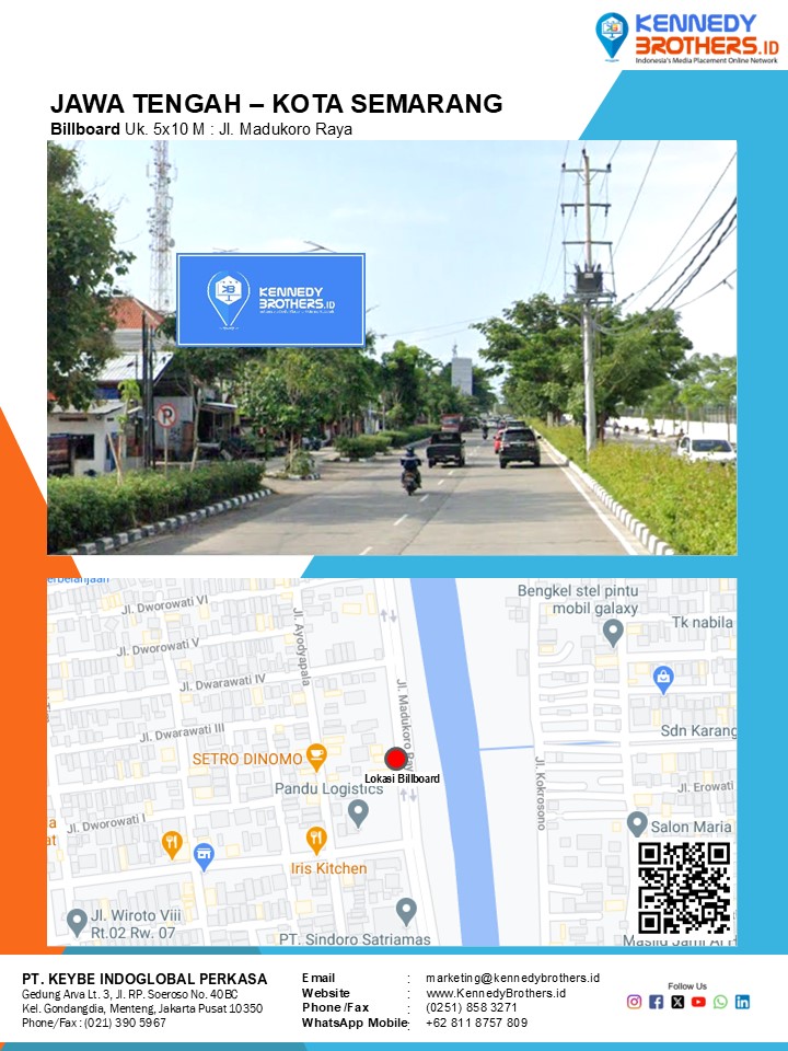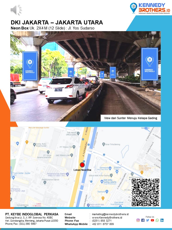 KennedyBrothers.ID adalah Platform Pencarian, Penyewaan dan Produksi Iklan Indoor-Outdoor Online Terbesar dan Terlengkap di Indonesia. Kini Pesan dan Sewa Billboard, Led/Videotron, Bando Jalan, Neonbox, Streetsign, Branding Mall, Branding Mobil, Branding Motor bisa dilakukan di KennedyBrothers,Id. Untuk mempercepat proses pemesanan dan transaksi lokasi media ini dapat menghubungi admin pada icon CS WhatsApp (Fast Respon) Pojok Kanan Bawah