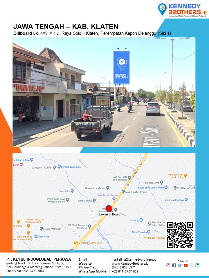 KennedyBrothers.ID adalah Platform Pencarian, Penyewaan dan Produksi Iklan Indoor-Outdoor Online Terbesar dan Terlengkap di Indonesia. Kini Pesan dan Sewa Billboard, Led/Videotron, Bando Jalan, Neonbox, Streetsign, Branding Mall, Branding Mobil, Branding Motor bisa dilakukan di KennedyBrothers,Id. Untuk mempercepat proses pemesanan dan transaksi lokasi media ini dapat menghubungi admin pada icon CS WhatsApp (Fast Respon) Pojok Kanan Bawah
