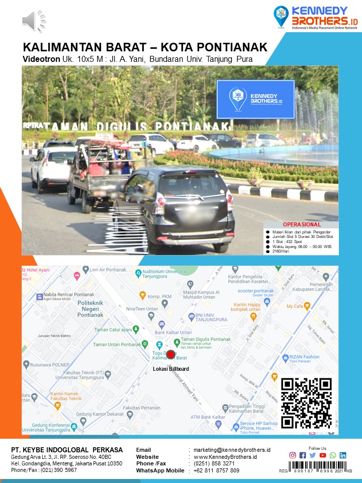 KennedyBrothers.ID adalah Platform Pencarian, Penyewaan dan Produksi Iklan Indoor-Outdoor Online Terbesar dan Terlengkap di Indonesia. Kini Pesan dan Sewa Billboard, Led/Videotron, Bando Jalan, Neonbox, Streetsign, Branding Mall, Branding Mobil, Branding Motor bisa dilakukan di KennedyBrothers,Id. Untuk mempercepat proses pemesanan dan transaksi lokasi media ini dapat menghubungi admin pada icon CS WhatsApp (Fast Respon) Pojok Kanan Bawah